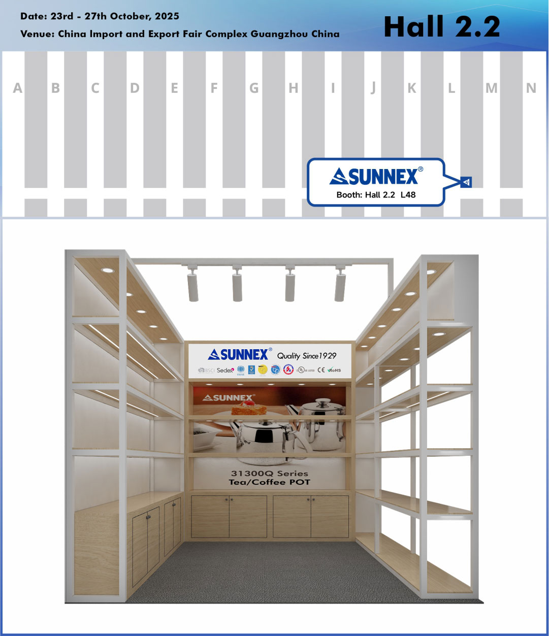 Guangzhou, Κίνα – Οκτώβριος 2025 – Η SUNNEX Century (Shenzhen) Ltd., κορυφαίος κατασκευαστής premium σκευών μπουφέ, φαγητού πιάτων, διανομέων ποτών και οικιακών ειδών, είναι στην ευχάριστη θέση να προσκαλέσει διεθνείς αγοραστές, μέσα ενημέρωσης και επαγγελματίες του κλάδου να επισκεφτούν τα περίπτερά μας στην 138th China Import and Export Fair (C).